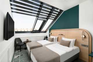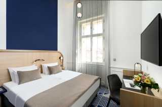 Our rooms are designed to provide you with an inviting atmosphere and maximum comfort during your stay. The rooms are offering view to the city or to our historical lobby and are all equipped with comfortable large beds or with two twin beds, air condition, flat screen TV, phone, coffee machine and a laptop size safe.