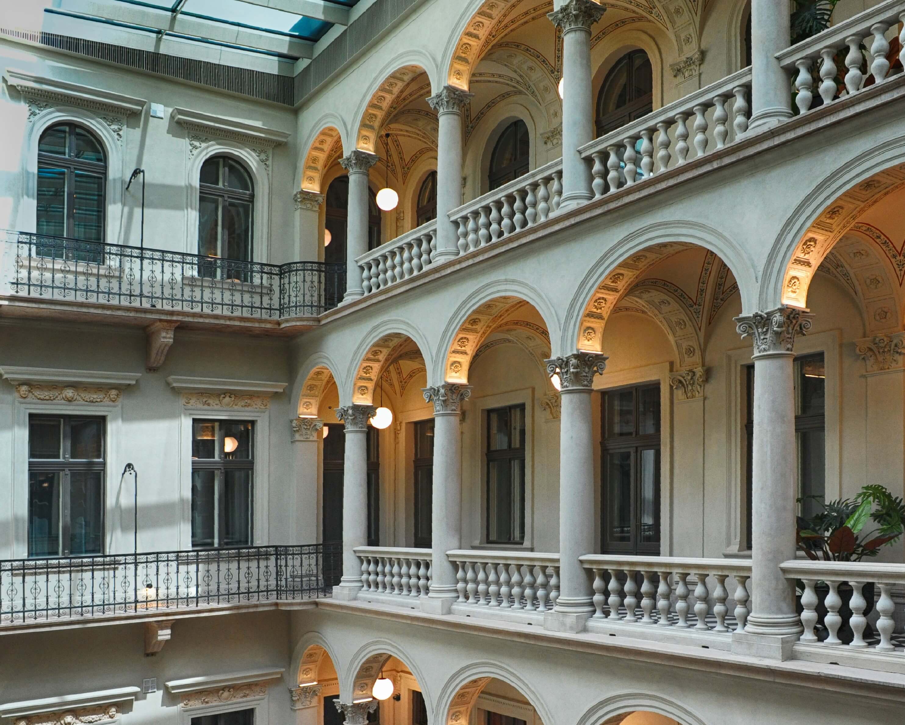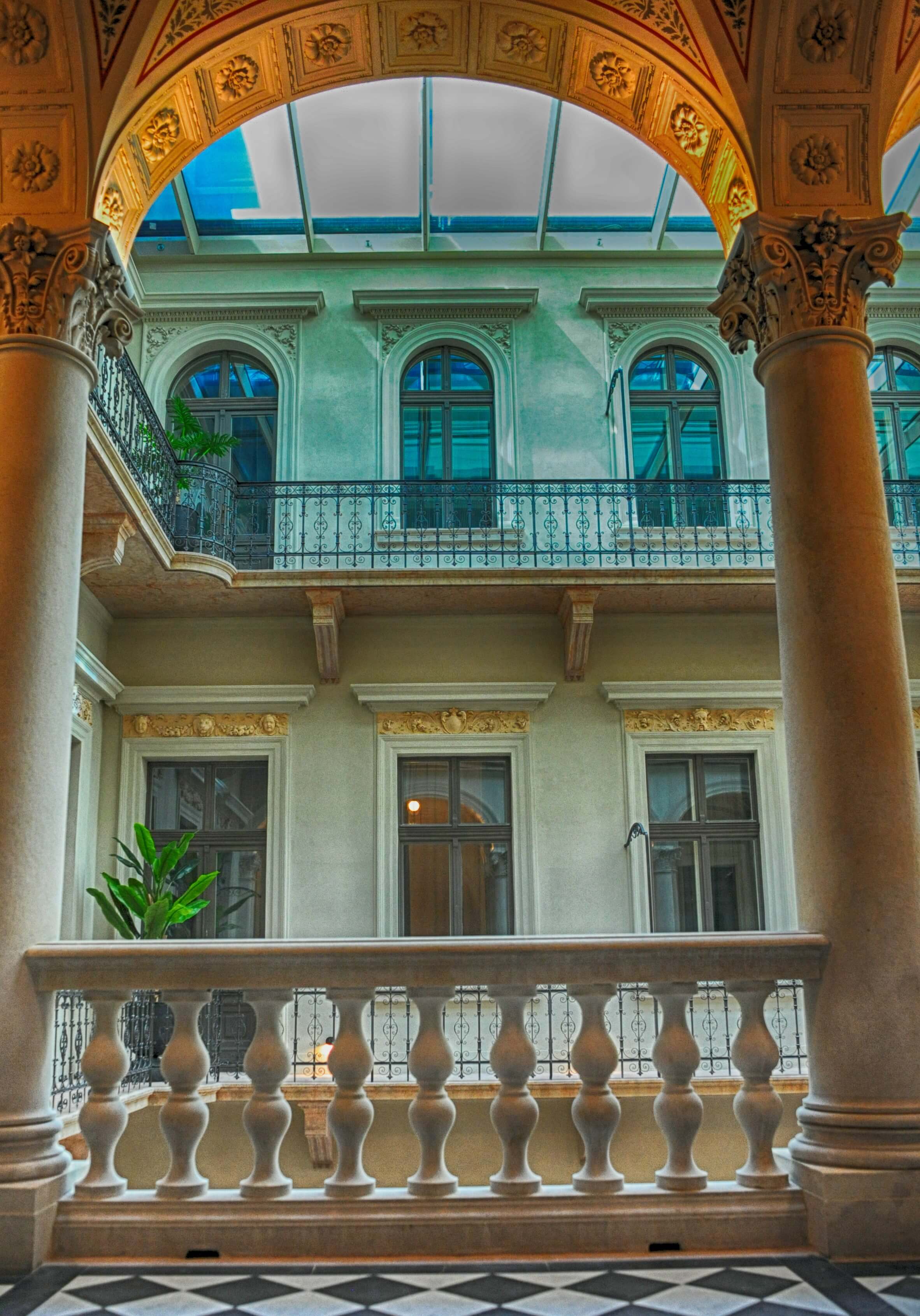 A picture says more than a thousand words. During the renovation, the noble palace continues to retain its original character, in the inner courtyard behind the representative gate, instead of horses and carriages, we now find a lobby and a breakfast area, the ceiling details of the gangs have regained their original beauty. The defining elements of the building, such as the painted arches and original woodwork have returned to their original appearance after the historic restoration and represent important values that have been saved for the future.